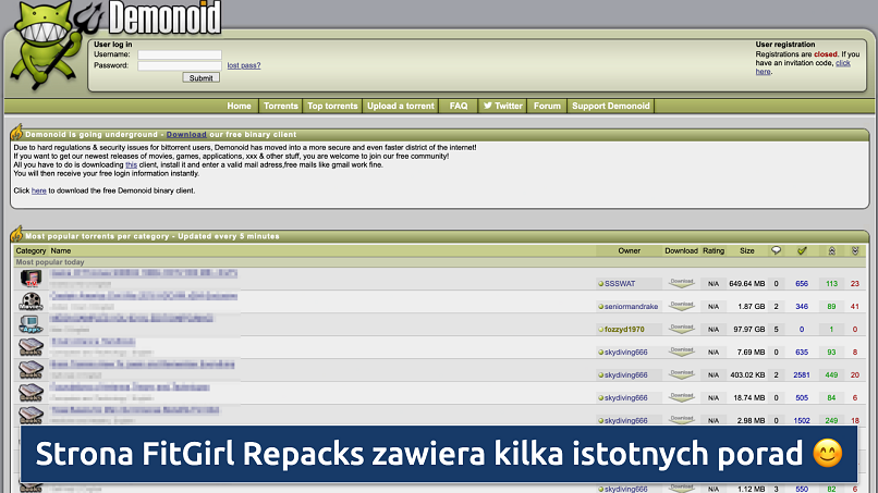 Uwaga: Nie powinieneś używać Demonoid do pobierania pirackich lub nielegalnych treści.